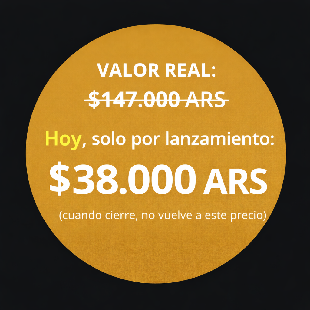 El costo del programa no son $38.000 ARS. Ni siquiera son los $147.000 ARS que realmente vale. El verdadero costo es seguir perdiendo tiempo frustrándote gastando energía en cosas que no funcionan invirtiendo dinero sin resultado sviendo cómo pasan los años y vos seguís en el mismo lugar. Mientras sabés que podrías estar mucho más lejos .Esto no se trata de comprar un producto. Se trata de dejar de abandonarte. Hoy podés entrar por $29.700 ARS. Mañana el precio vuelve a subir.Y el tiempo que perdiste, no vuelve nunca.